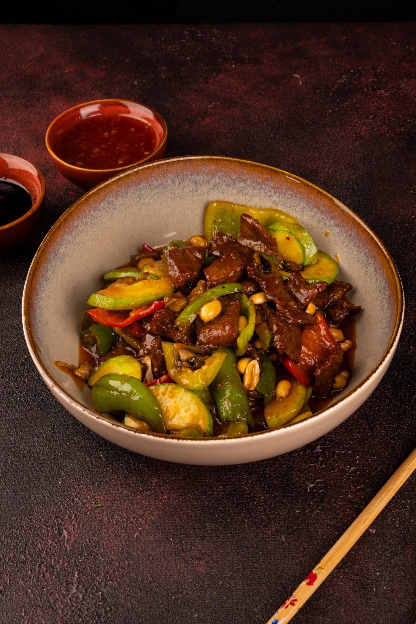 Yaprak et, Acı sos, Mantar, Havuç, Biber, Fıstık, Sarımsak, Zencefil