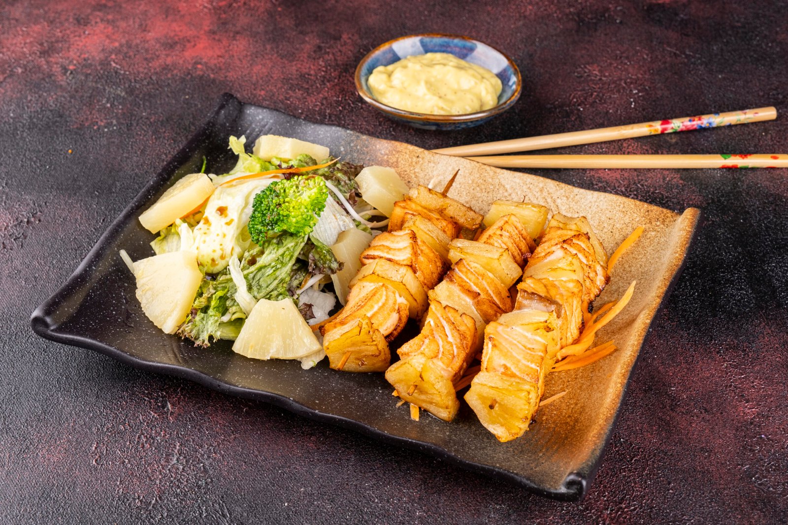 Somon şiş, Ananas, Yeşil Salata