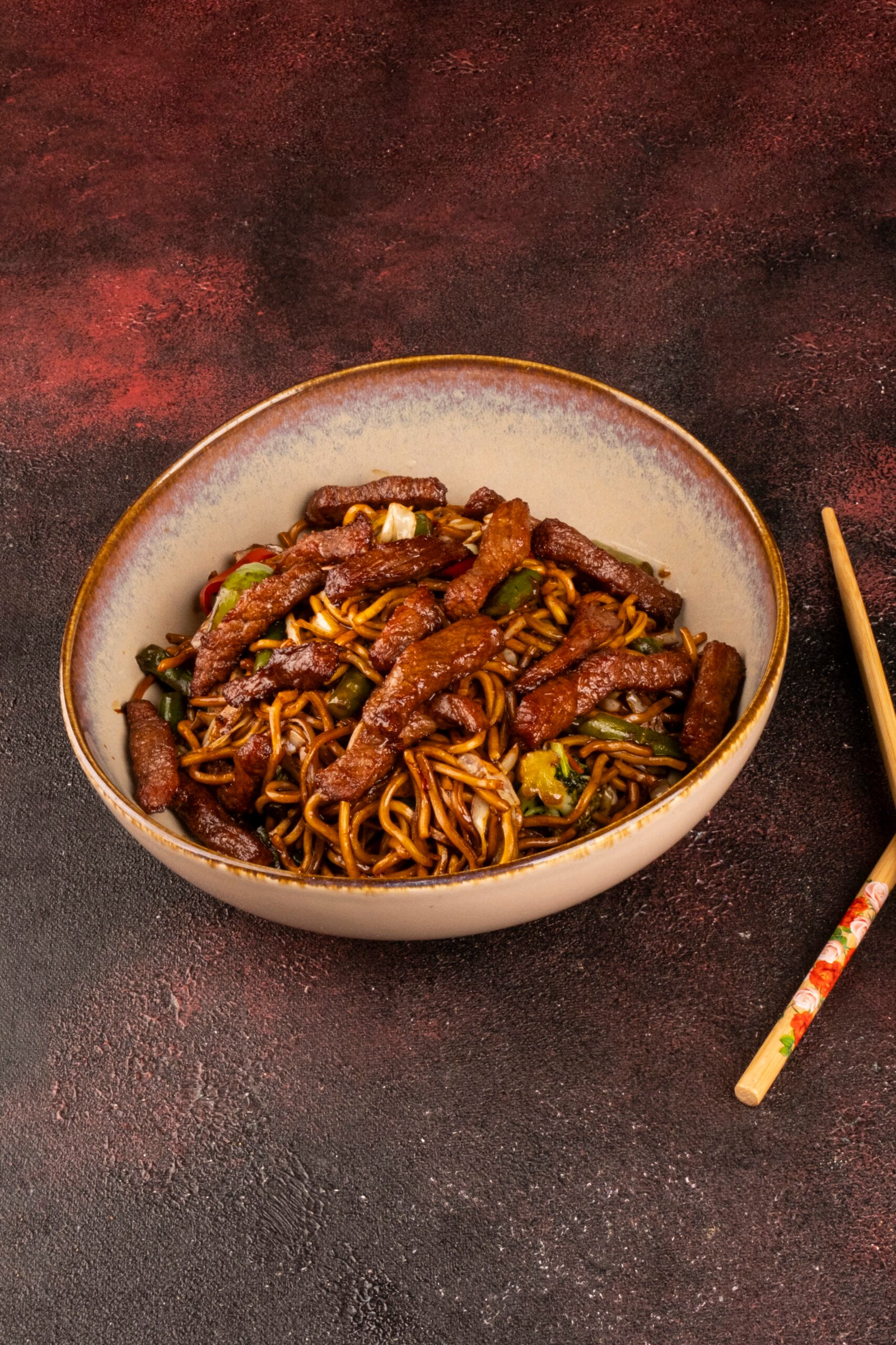 Erişte,dana eti,dolmabiber,kapyabiber,taze soğan,havuç,lahana,brokoli, noodle sos