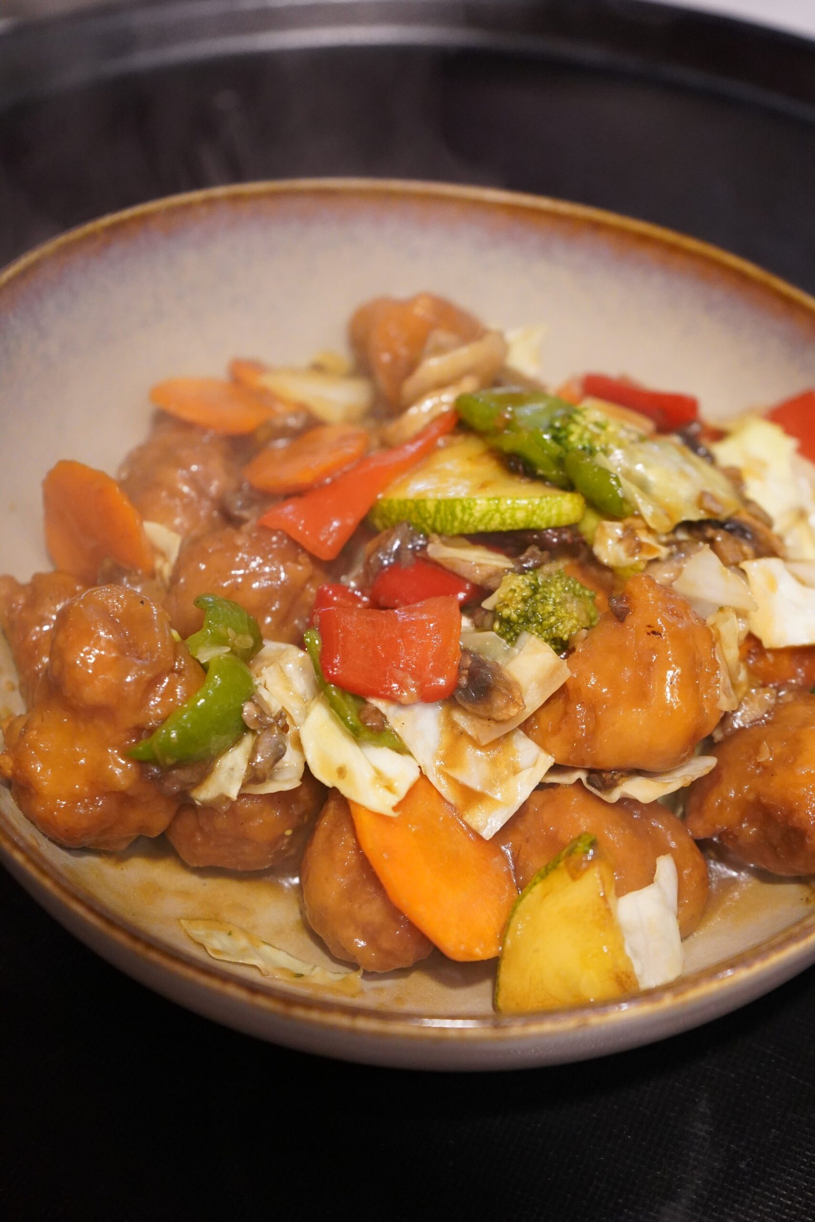Tavuk, Havuç, Soya filizi, Mantar, Biber, Kabak, Lahana, Brokoli, Zencefil