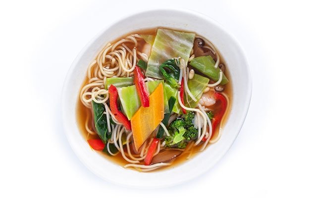 Noodle, Havuç, Mantar, Brokoli, Soğan, Soya filizi, Sarımsak
