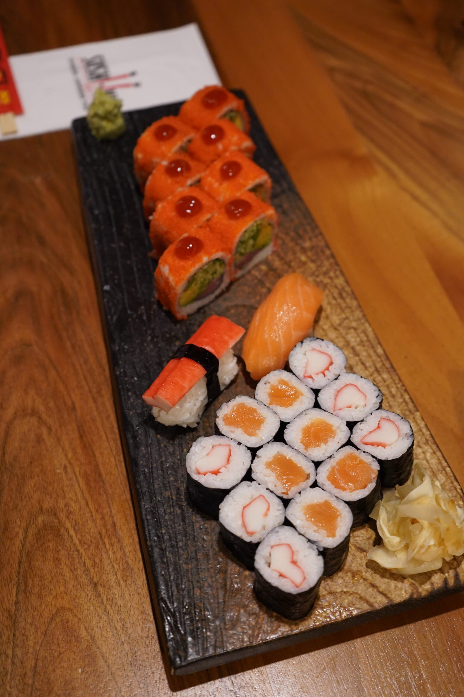 Sake Maki (6), Spicy Maguro Roll (8), Kani Maki (6), Kani Nigiri (1), Sake Nigiri (1)